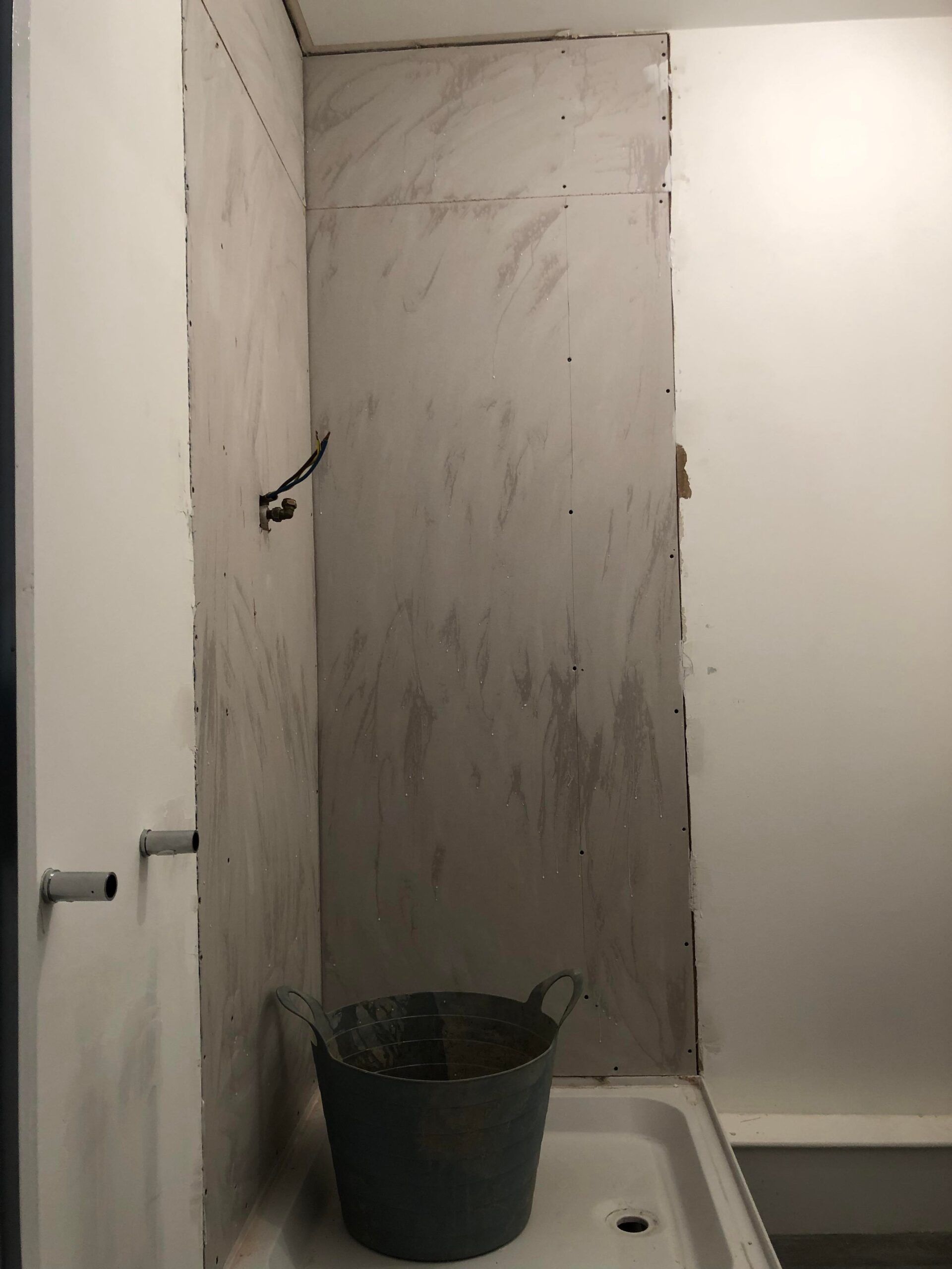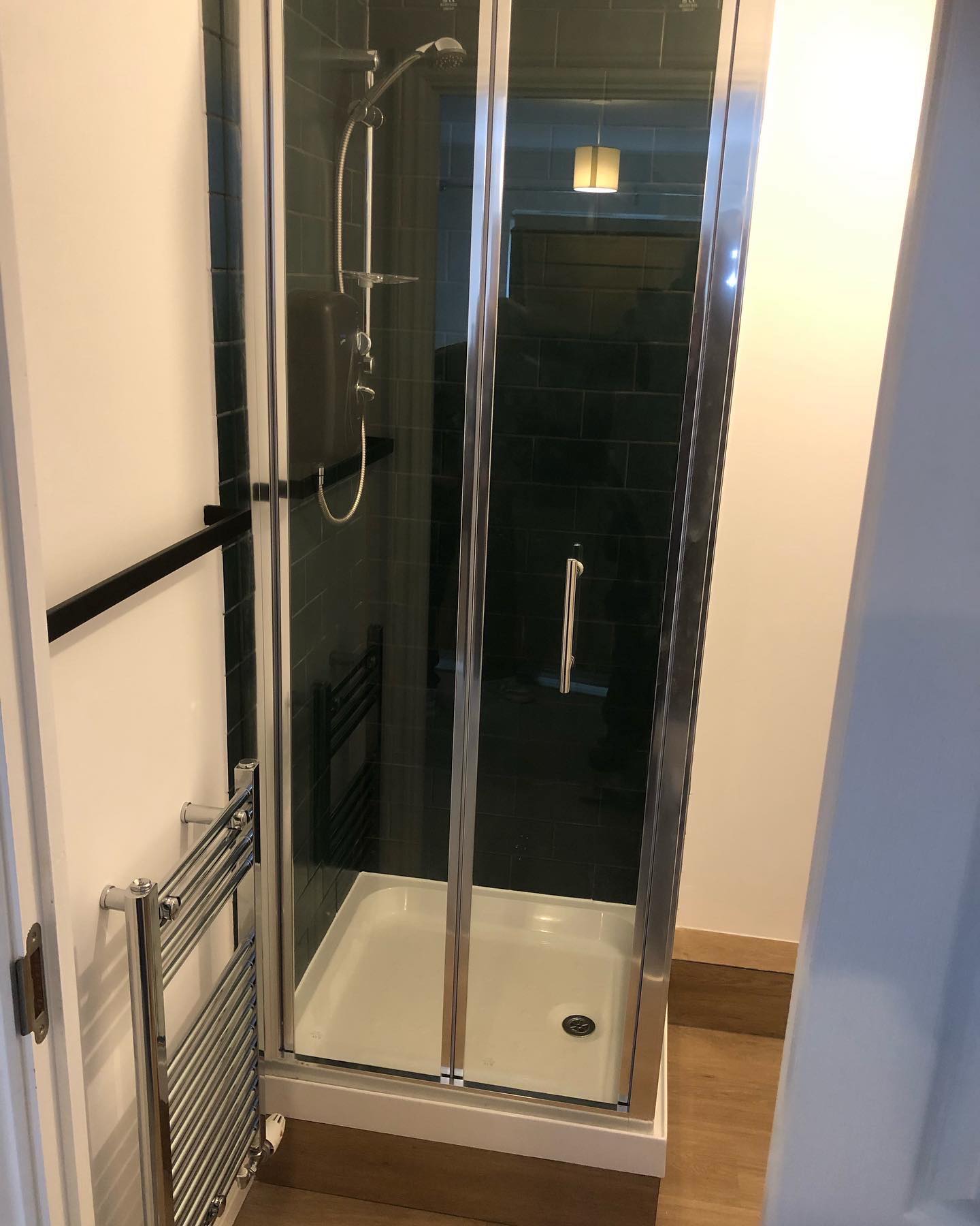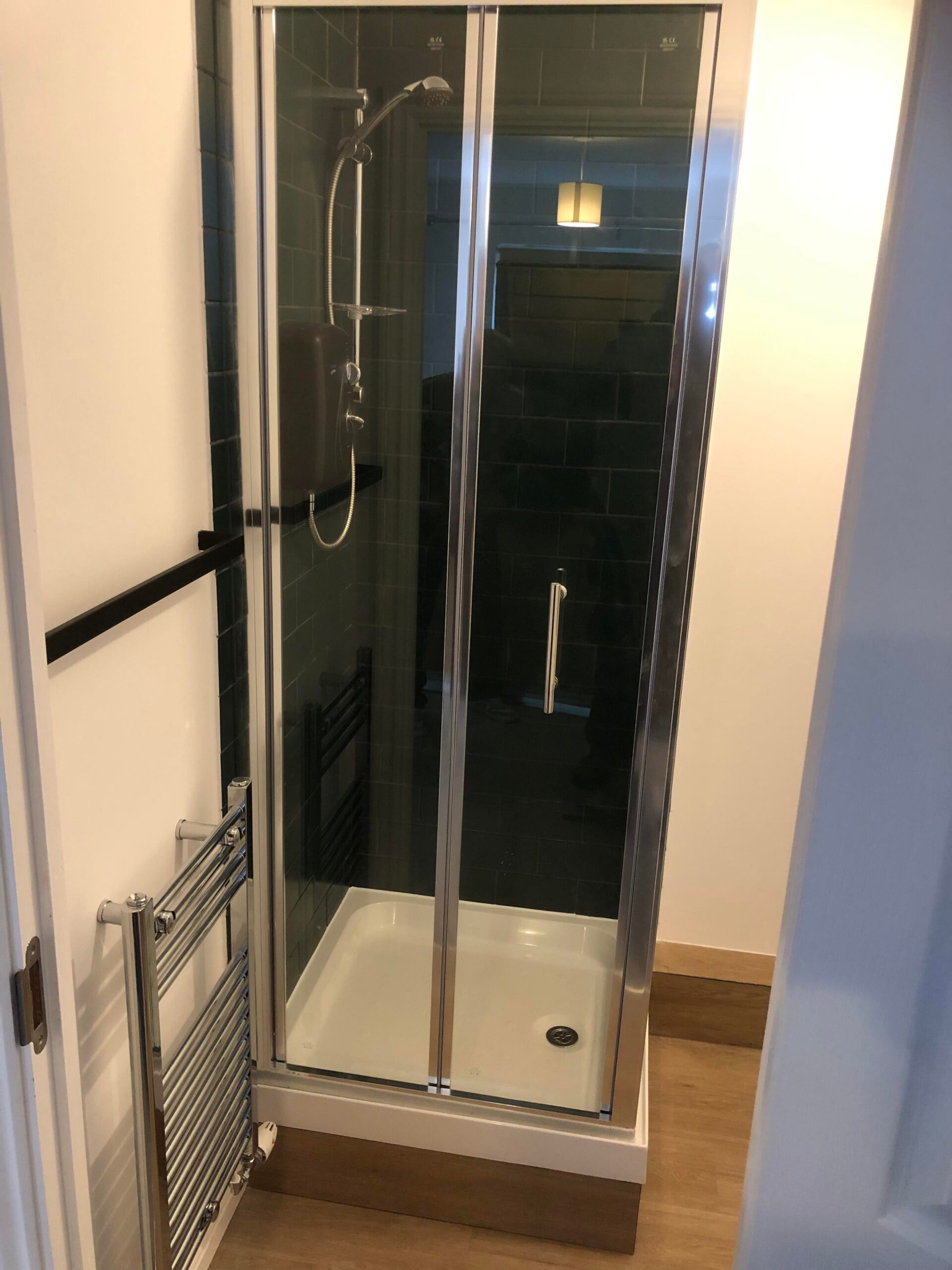 The old shower has been removed and replaced with a new one. Additionally, our team did full tiling and painting of the entire bathroom and the new LVT floor.