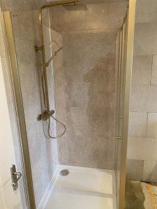 With the basics in place, we moved on to installing new fixtures, including a sleek, modern shower. The client chose high-quality tiles that not only looked stunning but also provided durability. We carefully laid the tiles on the walls and floors, ensuring a flawless finish.