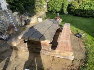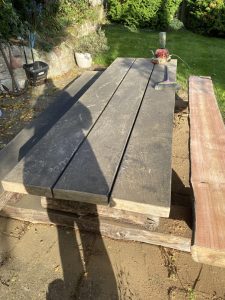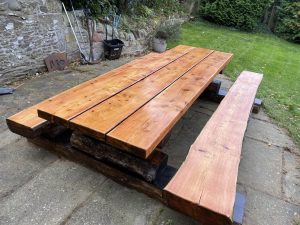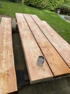 Transform your outdoor space with Cezar Renovations’ expertise. Our recent project involved revitalizing a worn-out larch garden furniture set. This solid table and two benches were once scruffy, weathered, and lacked luster. Our dedicated team painstakingly sanded every piece to perfection and applied a protective coat of Osmo oil, restoring them to their former glory.